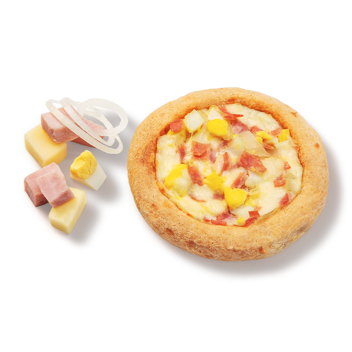 Experimente a riqueza de sabores da Catapizza Portuguesa! Nossa mini pizza é preparada com a tradicional massa de pão de queijo e leva um recheio generoso de queijo, presunto, ovos, cebola e azeitonas. Uma combinação clássica que encanta com sua intensidade e equilíbrio. Seja para uma refeição rápida ou um momento especial, a Catapizza Portuguesa é uma escolha saborosa que agrada a todos.